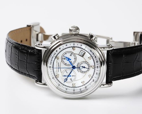 НОВОЕ ПОСТУПЛЕНИЕ!!! Calvaneo 1583 Chesteem Diamond Мужские Хронографы Механизм: Кварц КалибрШвейцарский: ISA Swiss Quarz Caliber 8161—202 Функции: Дата, тахиметр, секундомер Тип застежки: Бабочка с тремя звеньями Корпус: Нержавеющая сталь Браслет из воловьей вожи (стоек к истиранию) Стекло: Минеральное стекло Вес: 90 g Водонепроницаемость: 3 bar Диаметр корпуса: 42 mm Высота корпуса: 13,5 mm Гарантия: 2 года Цена: 54 000 тенге