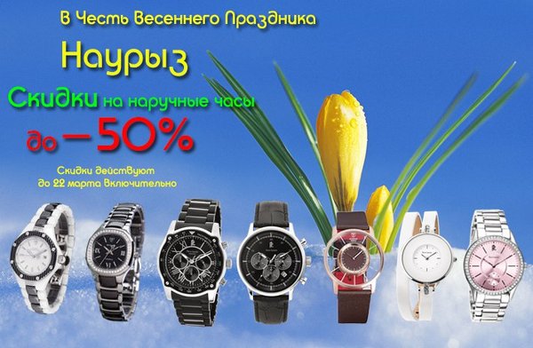 Скидки до -50% в Честь Весеннего Праздника Наурыз!!! Скидки действуют только до 22 Марта включительно. P.S. Прямая ссылка на часы со скидками в нашем профиле. Работаем в выходные и праздничные дни. Ничего лишнего только время и стиль… Дом Часов ___________________________ Посетите наш сайт: ___________________________ Звоните или пишите нам: