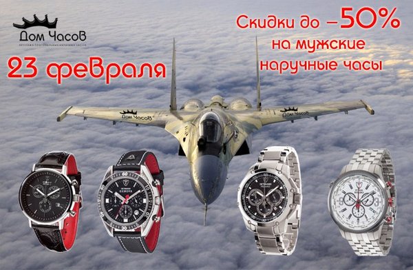 В честь 23 февраля дарим скидки до -50% на мужские наручные часы Порадуйте своих мужчин настоящим мужским предметом роскоши! P.S. Прямая ссылка на часы со скидками в нашем профиле. Ничего лишнего только время и стиль… Дом Часов ___________________________ Посетите наш сайт: ___________________________ Звоните или пишите нам: