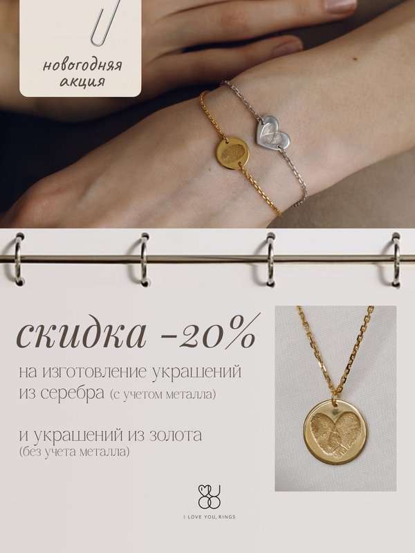 Особенные украшения и кольца с вашими отпечатками пальцев от I LOVE YOU, RINGS! Как создать украшение? — заказать онлайн или на примерке в студии; — создать его самостоятельно на мастер-классе; — выбрать готовую основу изделия в студии и нанести гравировку. Каталог изделий можно посмотреть на сайте iloveyourings.ru