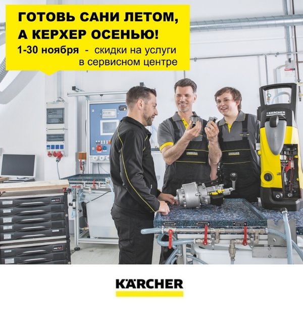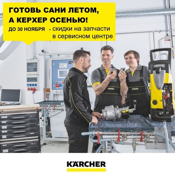 Готовь сани летом, а Керхер осенью! С 1 по 30 ноября стартует сервисная акция. Предъяви купон, либо скриншот этого поста и получи скидку 5% на запчасти. *Подробности в сервесных центрах, либо по телефону горячей линии.