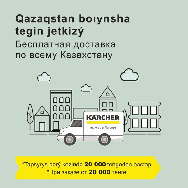 Как быстро и удобно заказать технику Керхер? ⠀ Ответ прост: сделайте заказ в нашем интернет-магазине и мы доставим его в любую точку Казахстана.⠀ ⠀ При заказе свыше 20 000 тг. доставка осуществляется бесплатно⠀ ________ Kärcher jabdyqtaryna jyldam jáne yńǵaıly túrde qalaı tapsyrys berýge bolady? ⠀ Jaýap qarapaıym: bizdiń ınternet-dúkende tapsyrys jasańyz biz ony Qazaqstannyń kez kelgen jerine жеткіземіз.⠀ ⠀ Tapsyrys 20 000 tg. joǵary bolsa jetkizý tegin
