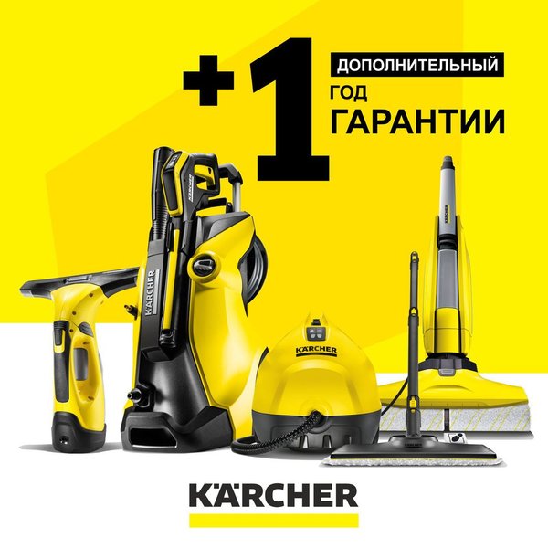 Зарегистрируйтесь и получите дополнительный год гарантии! — Важно! Регистрацию необходимо произвести не позднее 4-х недель с момента приобретения товара. - Дополнительная гарантия распространяется только на бытовую технику. Подробная информация на сайте в разделе «Продление гарантии». По всем вопросам обращайтесь по телефону горячей линии Керхер