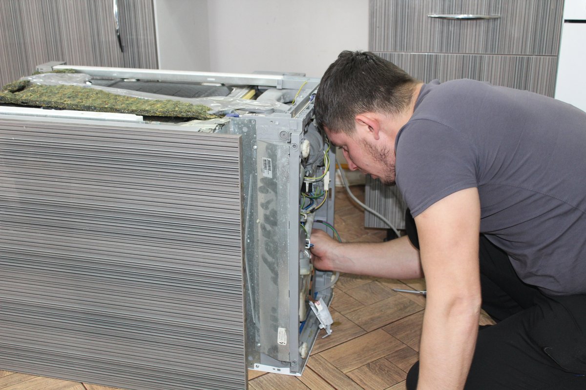 Стоит новый 10-ти этажный дом, в этом доме 1-ый подъезд, подвальное помещение, левая дверь, перед подъездом есть наша вывеска. (ШЕБЕРХАНА — Ремонт бытовой техники)
