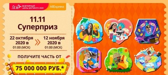 # Получите суперприз 11.11! Заберите свою часть от 75 000 000 руб. –– соберите стикеры на AliExpress