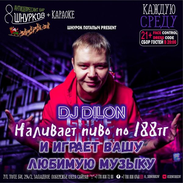 ртур Казарян @mc_bronson DJ Dilon @dj_dilon Конкурсы, призы, интерактивы Ждем всех! Всем с отличным настроением, комплименты от нас будуд ждать Всех! FC/DC +21 ______________________________________ Мы открыты каждый день с 12:00; Толе би, 294/2
