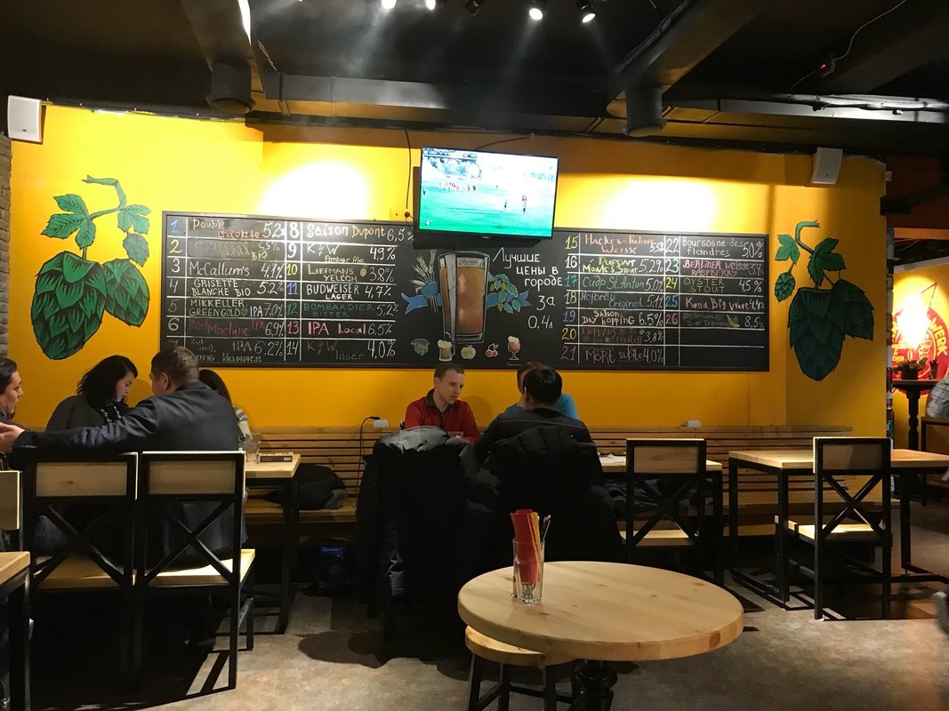 Чаще всего на кранах нет пива, которое хотелось бы попить. Кухня ок. Тк место находится в подвале, не всегда ловит телефон.