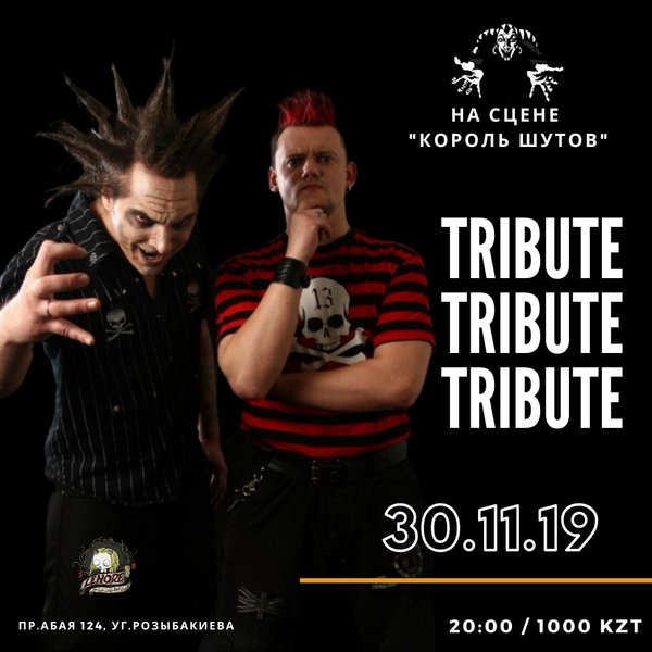 Отличные новости для поклонников культовой группы КиШ 30 ноября мы приглашаем вас на Tribute любимых музыкантов! Главные хиты прозвучат в исполнении группы «Король шутов». Начало 20:00 Вход: 1000 kzt Отмечай дату красным и не пропусти концерт! Справки, БРОНЬ, вопросы: пр.Абая, 124 уг.Розыбакиева