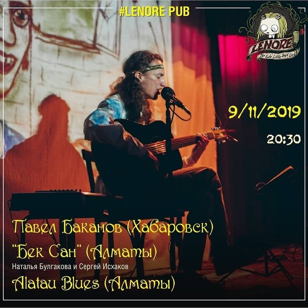 Сегодня вечером в Lenore pub гость из Хабаровска — Павел Баканов. Приглашаем тебя окунуться в атмосферу народного фольклора и авторских композиций автора. Павел Баканов — автор песен, лауреат дальневосточных фестивалей, путешественник, блогер, писатель, режиссер. жанр — фьюжн-акустика Также в этот вечер вас порадует своим выступлением: -группа «Бек Сан» (Наталья Булгакова и Сергей Исхаков); -и группа Alatau Blues Начало: 20:30 Вход: СВОБОДНЫЙ Мы приглашаем всех любителей музыки. Это будет атмосферно, душевно, необычно! Справки, БРОНЬ, вопро… — Читать дальше