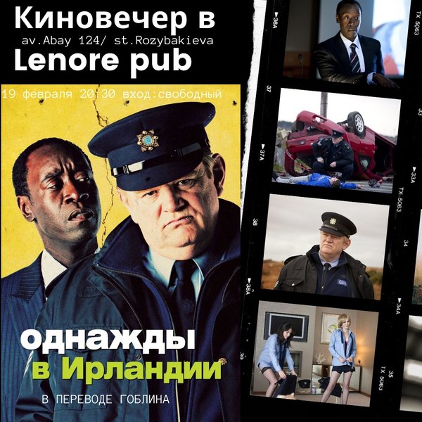 19 ФЕВРАЛЯ мы приглашаем всех на КИНОВЕЧЕР #2 Жанр: триллер, комедия, преступление Смотрим «Однажды в Ирландии» в переводе Гоблина, обсуждаем, делимся впечатлениями в уютной атмосфере Lenore pub. Женщины, выпивка и веселые шутки – вот радости добродушного ирландского полицейского, сержанта Джерри Бойла. Он никогда не помышлял о геройстве, пока однажды в городишке Голуэй не появился агент ФБР, который призвал незадачливого служителя порядка помочь ему накрыть международную банду наркоторговцев Для гостей: ароматный дымный кальян бар, домашнее… — Читать дальше