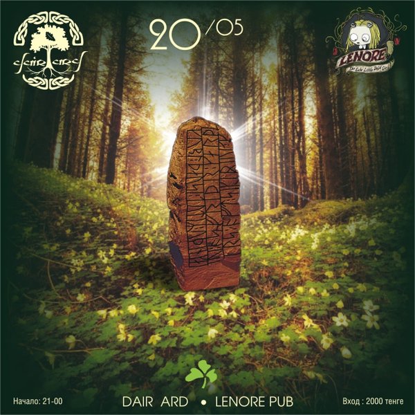 Dair Ard приглашает всех в Lenore pub, отдохнуть от трудовой недели и послушать старые кельтские мелодии и песни! Празднуем Mabon! 27 сентября 21—00 Вход свободный пр.Абая, 124 уг.Розыбакиева