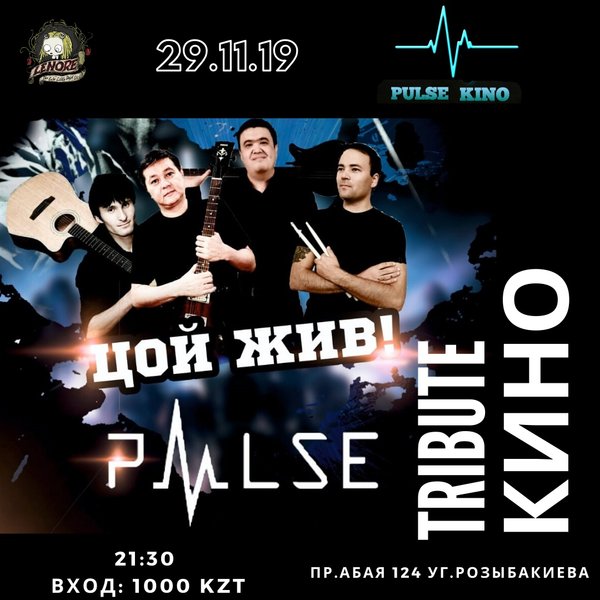 29 ноября мы вновь отправляемся в музыкальное путешествие по творчеству группы КИНО ЦОЙ ЖИВ — утверждают музыканты из PULSE KINO и мы с ними полностью согласны! Начало 21:30 Вход: 1000 тенге. Отмечай дату красным и не пропусти концерт! Справки, БРОНЬ, вопросы: пр.Абая, 124 уг.Розыбакиева