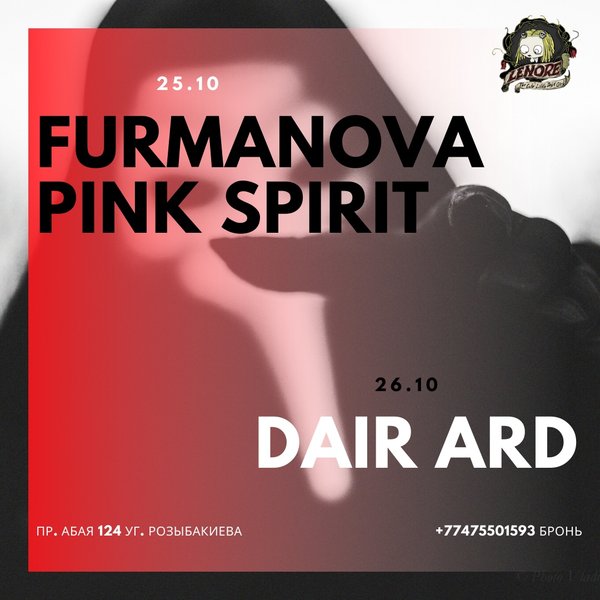 Музыкальный анонс на weekend от Lenore pub. Приходите, сделаем вам музыкально! 25.10 — поздравляет вокалиста FurmaNova с днем рождения и рвем танцпол вместе с ними, а также Pink Spirit 26.10 — кардинально меняем направление в сторону кельтских мотивов с Dair Ard Справки, БРОНЬ, вопросы: пр.Абая, 124 уг.Розыбакиева