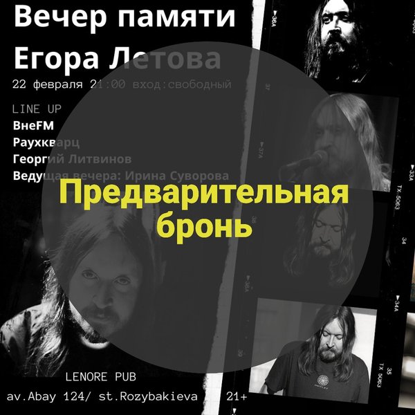 Друзья, бронь столов на концерт памяти Егора Летова открыта! Огромная просьба, бронировать заранее по телефону!. Будем рады всех видеть 22 февраля!
