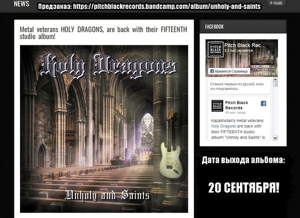 Поддерживаем отечественных музыкантов! Слушаем, затем пишем свои отзывы и поздравляем HOLY DRAGONS! Новый альбом HOLY DRAGONS «Unholy and Saints» выходит 20 сентября на Pitch Black Records и будет включать в себя 14 треков! Дополнительная информация — на сайте лейбла. Трек-лист альбома. 1. The Boilerplate (The Story of a Victorian Robot) 2. Ravens Of Odin 3. Through the Dark Sky 4. Schweigespirale (The Spiral of Silence) 5. Fly Your Guitar 6. Ravenmore 7. The Hall of Shame 8. Three Greatest Pigs 9. Fimbulwinter 10. Pretenders 11. Beltane Night'… — Читать дальше