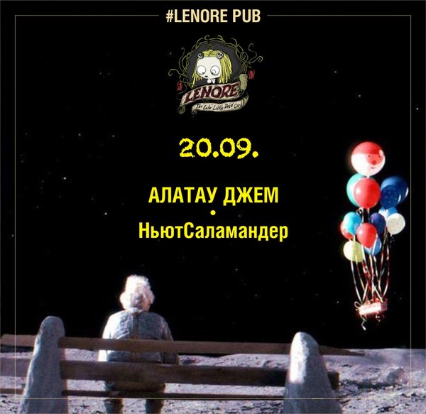 Ну, что, ты готов к очередной порции музыкальных новостей от Lenore pub? В пятницу, 20 сентября, еще две атмосферных команды создадут настроение на сцене нашего бара. Алатау Джем намерены пожужжать славно и весело на протяжении двух музыкальных сетов — форэшно-фолково-скрипичного и панкушного. Вторая группа НьютСаламандер также подарит вам неповторимое звучание. Начало в 20:00 Вход: свободный. Адрес: пр.Абая, 124 уг.Розыбакиева Бронь столов: