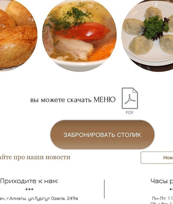 На нашем сайте вы можете скачать и ознакомится с нашим меню по вопросам +7 7273 9573