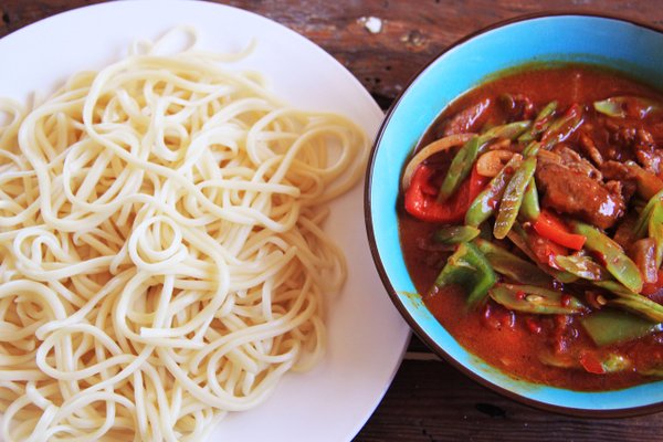 Прекрасного дня и ждём вас к нам! Наш лагман стал еще вкуснее! Лапша приготовленная традиционным способом вытягивания из цельного куска теста, отваривается непосредственно перед подачей на стол, сохраняя вкус, твердость и упругость теста!