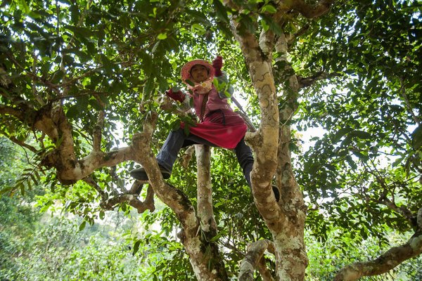 а. Имеет достаточно низкие вкусо-ароматические свойства, во вкусе присутствует горечь и терпкость. 2. Бань Цяому (半乔木, Ban qiaomu) — это переходный вид. Так обозначают либо окультуренные дикие деревья, либо разросшиеся чайные кусты. 3. Цай Пэй Гу Цяо Му — Культивируемое древнее дерево. Сырье имеет великолепные ароматические и вкусовые характеристики, используется для приготовления высококачественных Шенов. 4. Е Шэн Ча Шу – Дикие чайные деревья. К данной категории можно отнести чайные деревья, растущие в горах (не плантации), чей возраст составляет около 100 — 200 лет. Гарантированно полное отсутствие вмешательства человека, удобрений и химической обработки. Послевкусие и тело такого чая намного сильнее и толще, чем у плантационного. Чем выше над уровнем моря, тем сильнее интенсивность всех основных качеств (высота менее 2000 метров говорит о среднем уровне чая). 5. Е Шэн Гу Цяо Му — Дикорастущее древнее дерево. Это чайные деревья, растущие в глубине джунглей Юннани. Очень часто, термин «дикорастущий» в качестве маркетингового хода используют в отношении чая, растущего в горах. Плантации дикорастущих чайных деревьев расположены на Юго-Западе провинции на сравнительно большой высоте – более 2000 метров. Дикий чай бывает очень разный, может отличаться как по форме и размеру листа, так и по вкусу и аромату. Основной отличительной особенностью дикого чая всегда является сильный вкус и ярко выраженная горечь. Считается живым антиквариатом. 6. Гу Шу – Древние деревья. Старые(древние) деревья растут на склонах гор и имеют возраст 300 лет и более. Это самое лучшее сырье для производства Пуэра, чай данного типа, всегда входит в категорию самых дорогих.