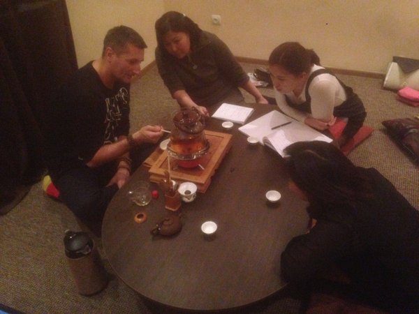 онии в Казахстане можно почитать в газете Курсивъ С интересом поговорили о чайных аукционах, о том как и где выращивают, о культурном значении и пользе для здоровья чая. Ну и естественно о политике. Ведь политологам свежезаваренный Пуэр дал еще больше энергии поговорить о актуальных проблемах, вызовах и рисках. Мне показалось, что гости ушли воодушевленные. :) Спасибо что посетили наш клуб, приходите еще. Будем рады новым посетителям в Чайный клуб, которые хотят расширить кругозор и познакомится с удивительной культурой восточных чайных церемоний. Всем добро пожаловать! P.S.: Забыли нормально пофотографироваться. В следующий раз, обязательно с делаем фотоотчет :)