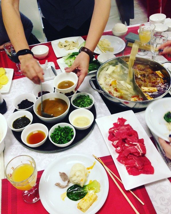ю. В разных провинциях Китая принято использовать различные бульоны. На севере, в степных регионах, где месяцами свирепствуют ветра, принято использовать наваристые бульоны из баранины. Жители прибрежных юго-восточных районов любят рыбные бульоны (особой популярностью пользуются бульоны из рыбных голов — настоящая уха с китайским оттенком), а вот южане предпочитают остро-пряные бульоны, да так, чтобы жгучий красный перец заполонял всю кастрюлю. Не уверена, что на острове Хайнань вам предложат попробовать суп из настоящей степной баранины, однако выбор все равно есть — обычно это 麻辣 (Málà, или остро-пряный бульон) или же несколько разновидностей неострого бульона (как правило, это мясной или рыбный бульон с овощами и грибами внутри). Обычно, я всегда заказываю не острый бульон, а вот сегодня решила все изменить и взяла кастрюльку остро-пряного 麻辣 Málà. Здесь нужно отметить, что Хуо Гуо — это не просто суп, это скорее некое лакомство, поэтому накрывать стол во время его приготовления принято, как говорится, «от души» — здесь и различные виды мяса, рыба и морепродукты, овощи и грибы, тофу, лапша и много-много других разнообразных китайских «деликатесов». Как говорят китайцы, если ты грустен и ищешь вдохновения, нет ничего лучше, чем провести вечер в ресторане 火锅 и разделить с друзьями «горячий котел». Оно и верно, Хуо Гуо — трапеза, не требующая спешки, но требующая компании. Ведь пока варится ароматный горячий бульон, можно обсудить с друзьями и коллегами все насущные вопросы, да и просто поговорить по душам. Что-что, а уж в еде и философии китайцы знают толк. ️ ️
