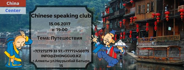 В четверг 15.06.2017 планируется проведение Chinese club на тему Путешествия. Задача, поговорить о окружающем мире, о путешествиях и новых открытиях.