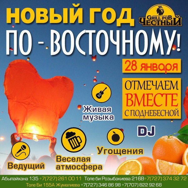 Дорогие друзья, праздники продолжаются! Ждём Вас 28-го января на празднование Нового Года! #выходныеche Резерв и подробная информация ️374-32-72 Толе Би 216 В, уг.ул. Розыбакиева topche.info@gmail.com YouTube : Территория Объединенных Пабов