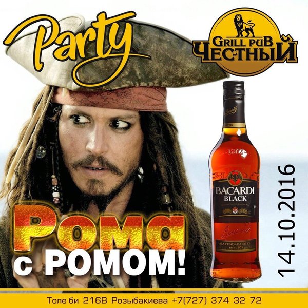 Самая чумовая party этой осени «Рома с ромом» Ромовая вечеринка или за свободную Кубу. Дождались! Как же не хватало по-истине безбашенной атмосферы и бешеного музыкального озноба по телу! Даааа сколько можно воздерживаться? В эту пятницу «El Latino » будет стелить максимально жестко, и только попробуй усомниться в крутости этого вечера. Ребята серьезные собрались дать каждому дозу сверхъестественного! ️Пришедшему гостю в костюме пирата Джека Воробья БУТЫЛКА РОМА в ПОДАРОК Для комфортного отдыха делайте резервы заранее: ️3743272 Толе Би 216… — Читать дальше