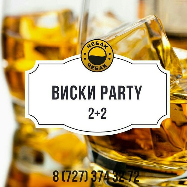 Главным напитком вторника в Чебаке является виски Выпейте две порции благородного напитка и получите ещё две за счёт заведения! Пропустите бокальчик-другой в нашей компании Наш адрес: ул. Толе би 216 В, уг. ул. Розыбакиева. Резерв столиков: 374-32-72.