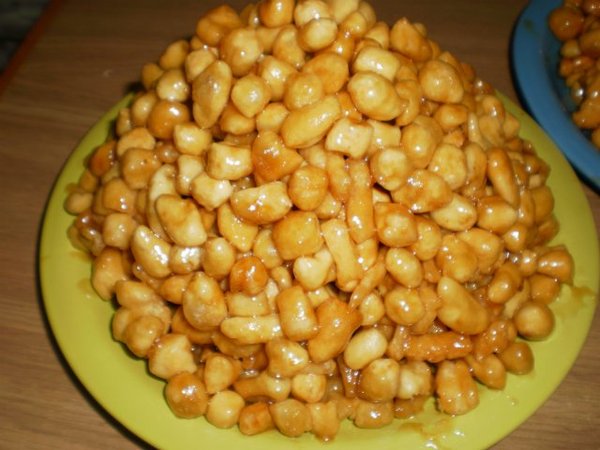ЧАК-ЧАК Чак-ча́к (башк. сәк-сәк, каз. шәк-шәк, кирг. чак-чак, тат. чәкчәк, узб. chak-chak/чак-чак) — восточная сладость, представляющая собой изделия из теста с мёдом, относящаяся к кухне тюркских народов, особенно в республиках Башкортостан и Татарстан (считается национальным башкирским и татарским блюдом). Чак-чак готовят из мягкого теста, сделанного из пшеничной муки высшего сорта и сырых яиц, формируются тонкие короткие палочки, по форме напоминающие вермишель, или шарики величиной с кедровый орешек, обжариваются во фритюре (в казане), а за… — Читать дальше