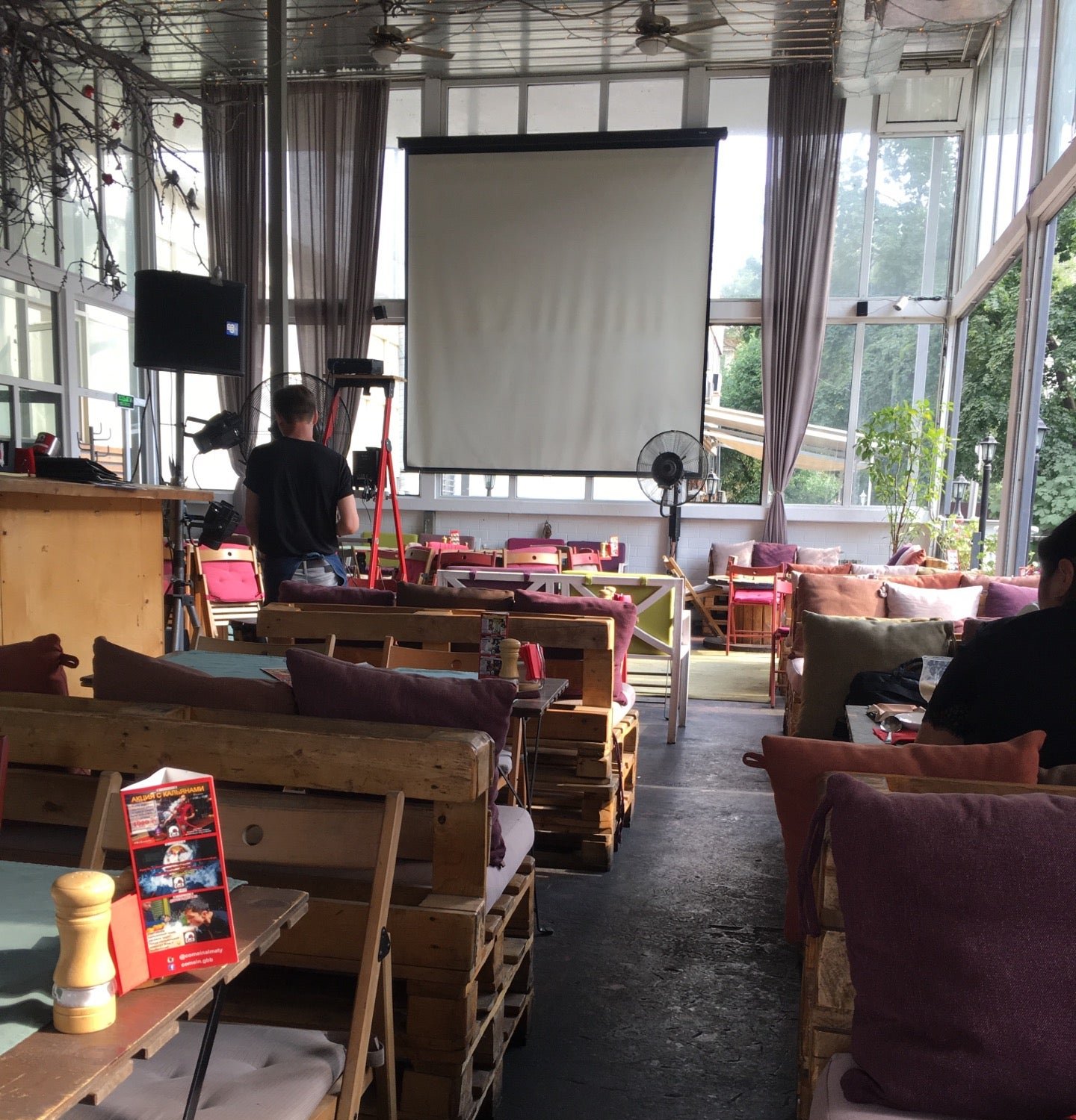 Были в субботу, ближе к ночи. Заказ ждали больше часа, музыка слишком громкая для заведения, где кушают, местечко хорошее, атмосферная, но музыка все портит, потому что это был чистый КЛУБНЯК.