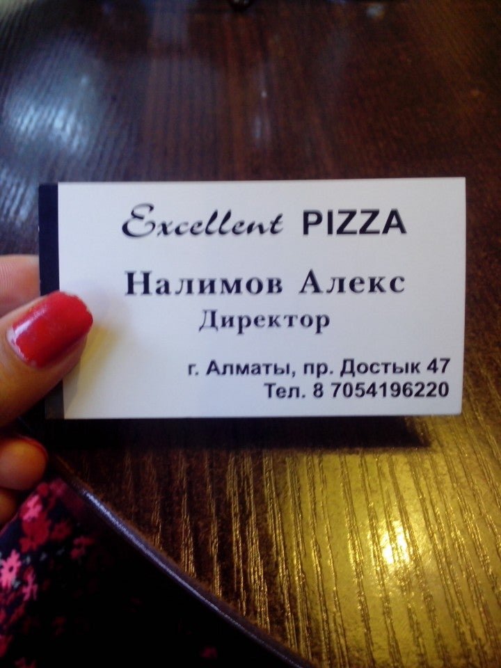 Кафе «Excellent» располагается на улице Фурманова, неподалеку от площади Астаны. В этом заведении посетителям предоставляется выбор из блюд казахской национальной, европейской и мексиканской кухонь, в том числе пиццы с разнообразной начинкой. Вы можете заказать еду на дом и высвободить некоторое количество времени от каждодневной готовки для просмотра фильма или медитации. Имеется летняя терраса для любителей перекусить на свежем воздухе. Рядом со зданием заведения находится автомобильная парковка.