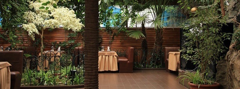 Рядышком с рынком «Универсальный» расположилось кафе «Зимний сад». Это очень красивое заведение с одухотворенной атмосферой. Интерьер украшен живой растительностью, что придает этому заведению очарования. В меню кафе вы можете найти традиционные блюда европейской и кавказской кухонь. Под звуки живой музыки, сидя в комфортном кресле, вы сможете по-настоящему расслабиться и оценить мастерство поваров кафе «Зимний сад». Для удобства посетителей у заведения есть удобная автомобильная парковка и бесплатный доступ Wi-Fi. Кафе работает без выходных.