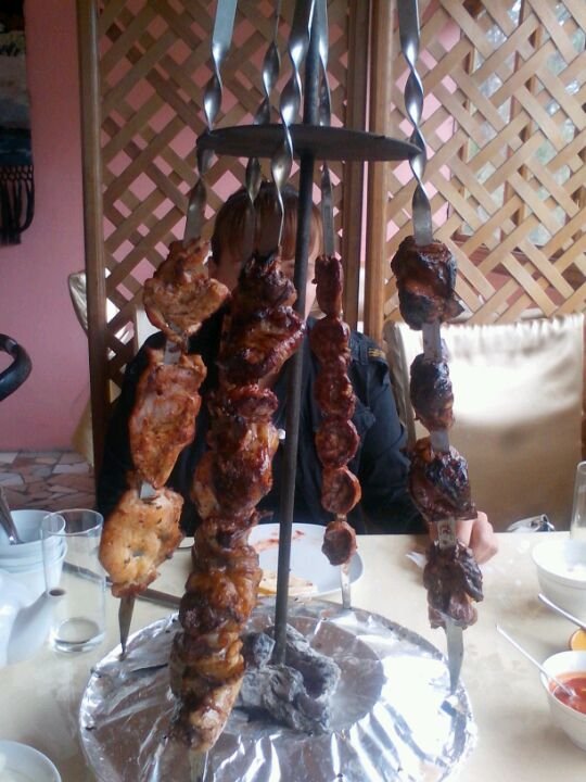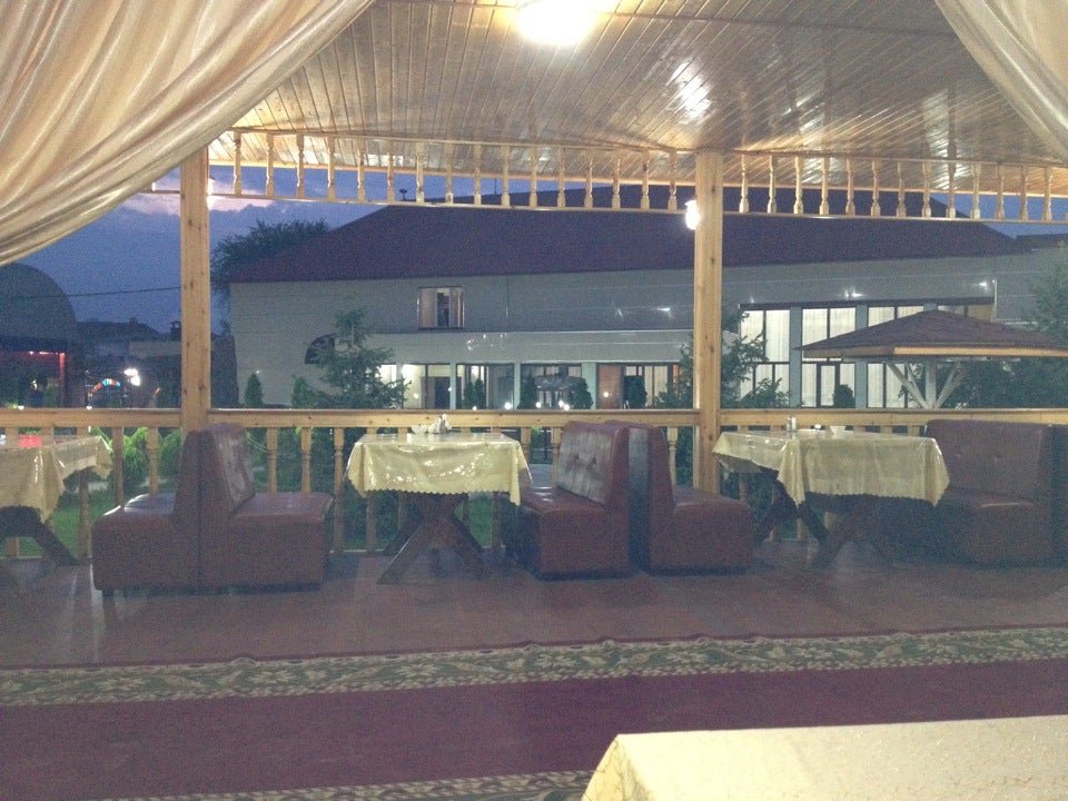 Кафе Айнура находится по адресу Казахстан, Алматы, Хан-Тенгри микрорайон, 171/1.