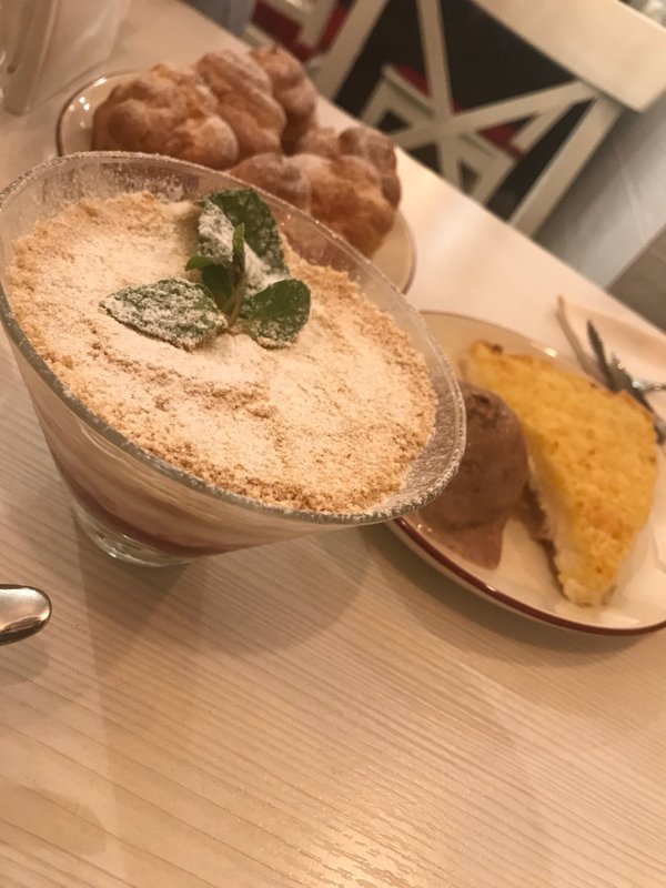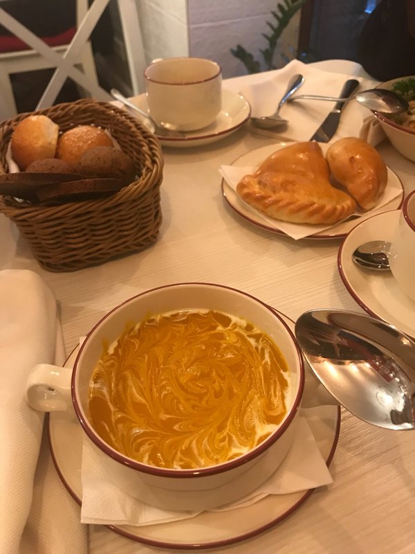 Очень вкусный фруктовый чай, супчик грибной объедение, а десерты просто пальчики оближешь! Уютная домашняя обстановка и обслуживание на все 100