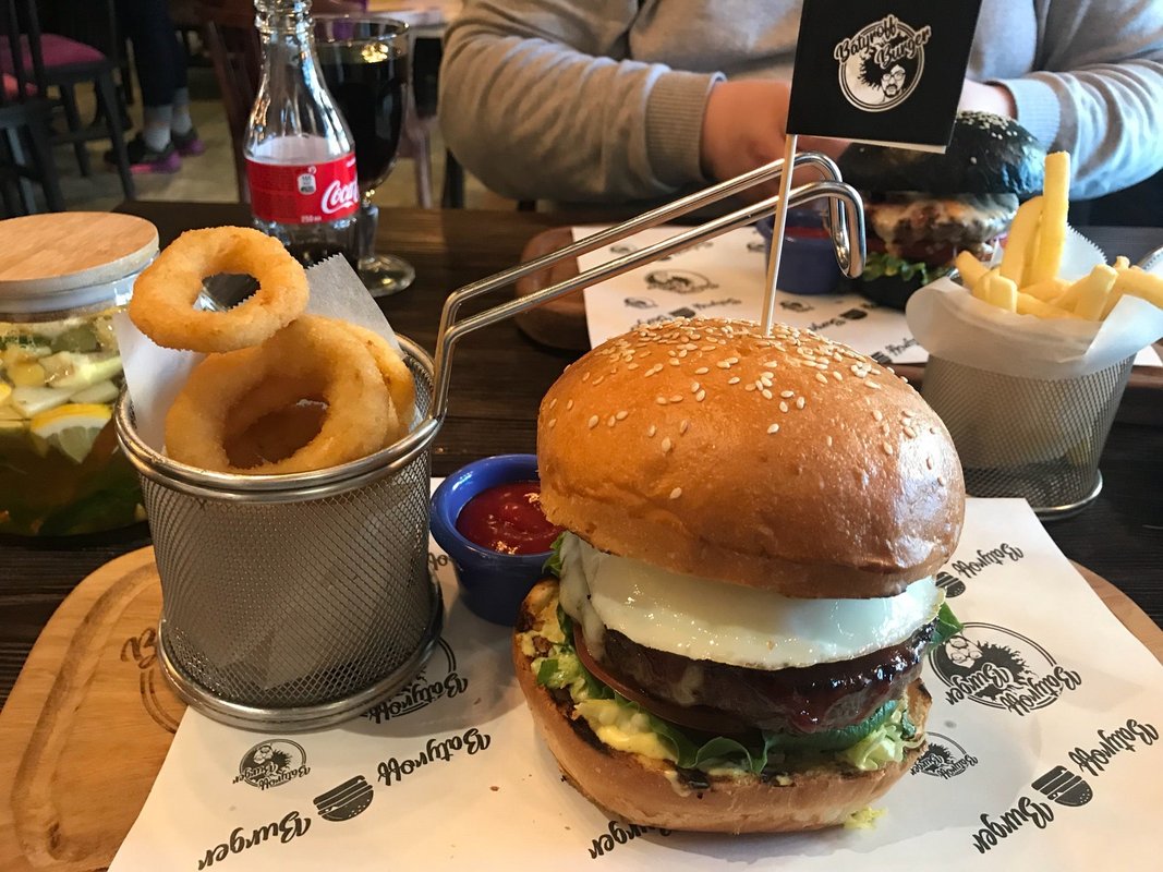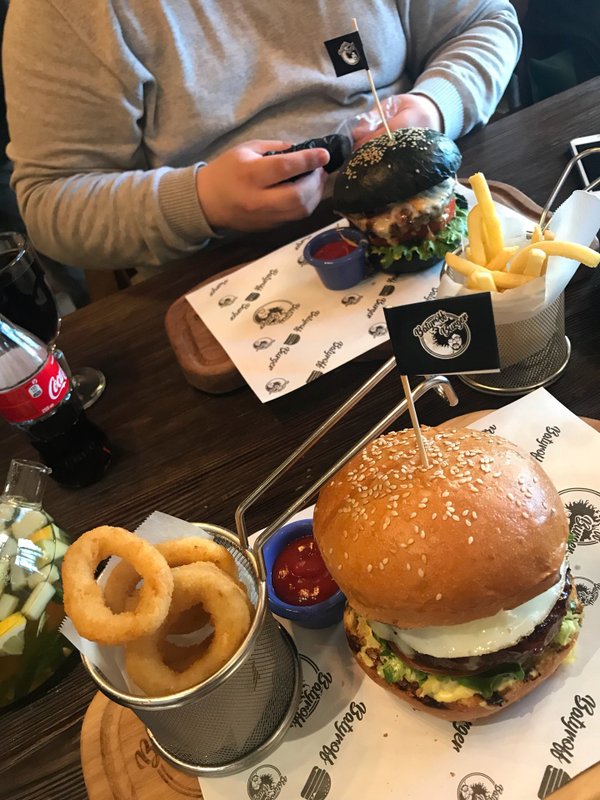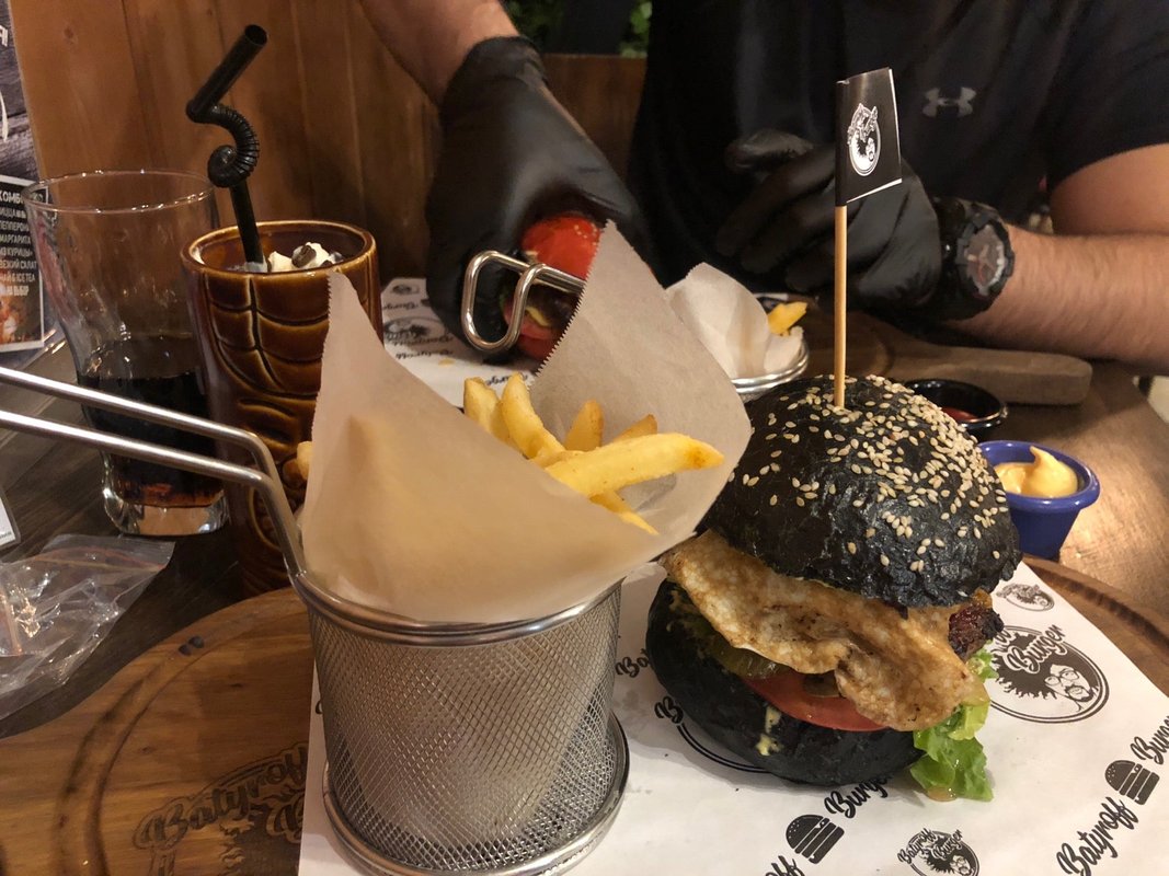 Очень вкусные бургеры, пробовал с креветками и Батыр бургер. Минус в Батыр бургере это то, что потекло яйцо и вся нижняя булочка развалилась. А так мне безумно понравилось. Единственный минус это цены