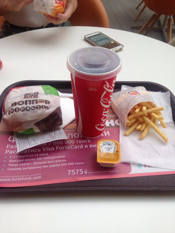 Апорт в бургер кинге при заказе не выдали чек, заказ был с собой, дома обнаружилось, что в бургере кроме булочки и сухой котлеты никаких ингридиентов больше не было
