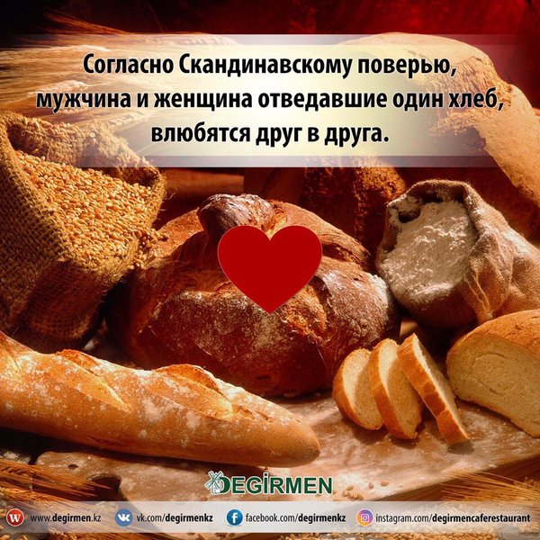 Согласно Скандинавскому поверью,мужчина и женщина отведавшие один хлеб, влюбятся друг в друга