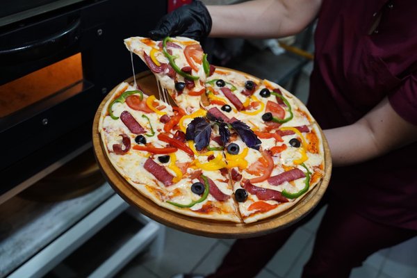 Ужин отдай врагу, а пиццей поделись с друзьями! ️ ⠀ Вам сколько кусочков надо? Обычно мы режем маленькие пиццы на 4 кусочка, среднюю на тонком тесте – на 6, остальные – на 8 ⠀ Но если что — договоримся Ну, а вдруг вы на диете и можете съесть не больше трёх кусков? Тогда мы с радостью поделим любую пиццу на нужное количество кусочков _________ ,