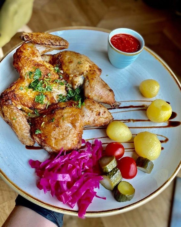 А вы знаете, что такое эффект бабушки? ⠀ Это когда после застолья ты выкатываешься из-за стола как шарик, прям как в гостях у бабушки. ⠀ Так вот наше блюдо с цыпленком имеет такой же эффект! Вах порция такая, что вы точно наедитесь от души. Молодой цыпленок, жареная картошечка, помидорки черри и соленья. Ммм…Для тех, кто любит вкусно и с толком получать удовольствие от еды. ⠀ Торопитесь попробовать наши самые яркие блюда, наполненные солнцем и нашей любовью! ️ ️ _________ ,