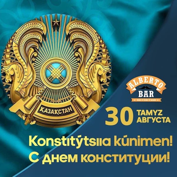 Сегодня радостный для всех Казахстанцев день — день, когда был принят главный документ нашей страны — Конституция. В этот день граждане нашей страны утвердили на всенародном референдуме принципы, которые определяют жизнь державы, ее устройство. Этот день праздничный для всех нас, потому что именно мы, каждый из нас — главная сила в государстве. Поздравляем всех с Днём Конституции РК и желаем процветания каждой семье и каждому дому, мира и благоденствия, радости и благополучия! _________ ,