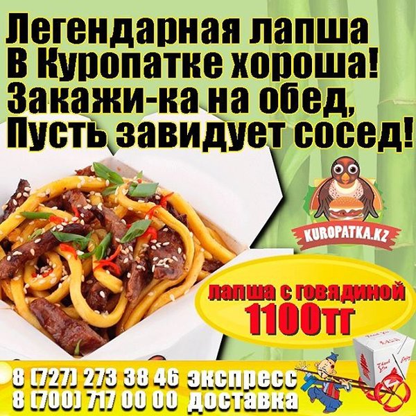 Фастфуд Дональдс (10.04.2017): Более 200 наименований в нашем меню ️. Ещё больше на нашем сайте Борщ по домашнему — 800 Жареные манты с мясом — 950 Кукси — 840 Лагман по домашнему — 1200 Овощной суп с фрикадельками — 650 Пельмени из говядины — 775 Рассольник — 800 Салат оливье — 1080 Солянка — 1100 Суп грибной — 920 Уха — 710 Харчо — 950 доставка этих блюд с 11.30 до 22.00 Доставка всего остального круглосуточно. Заказы принимаем через сайт или по телефонам @ Almaty, Kazakhstan