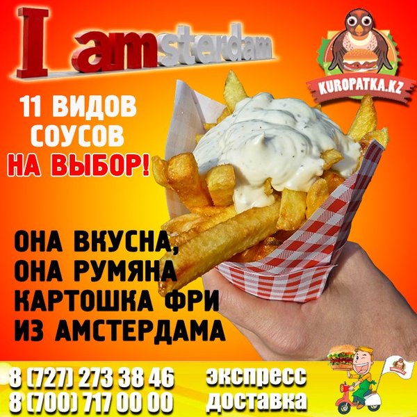 Фастфуд Дональдс (22.06.2016): Новинка! Картошка фри «Амстердам». 11 видов соуса на выбор. Большая порция. Очень вкусно и питательно! Уже в продаже в фаст фуде Дональдс на Толе би.