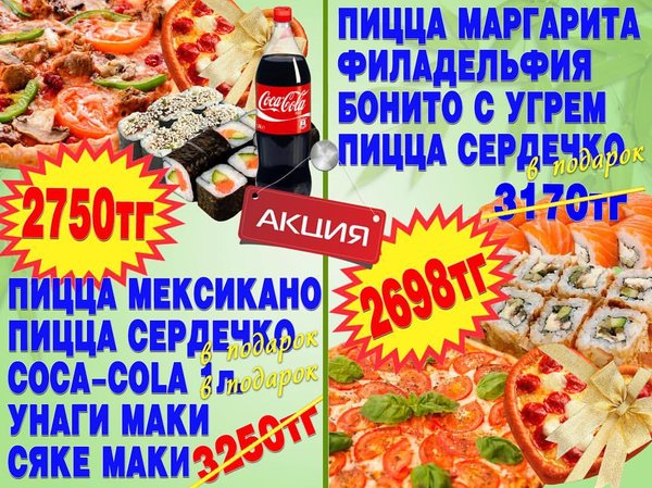 Суши, пицца, бургеры, донеры с доставкой. Алматы6 июня 2018 в 20:20