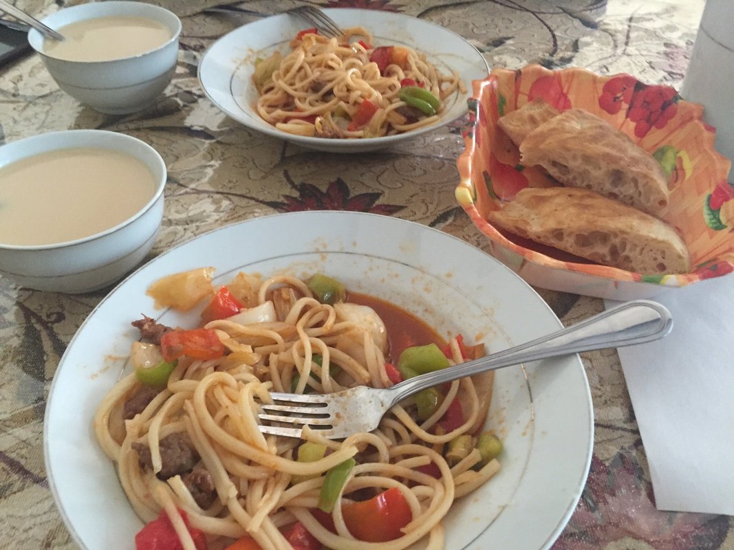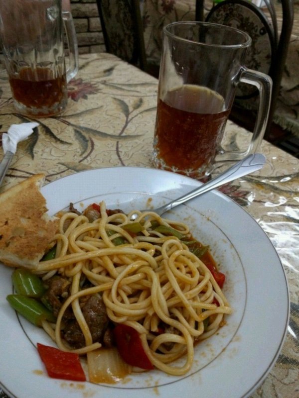 Вкусный лагман. Если острое не любите, обязательно просите не острый, так как лагман тут острый. Ценник 900 за лагман