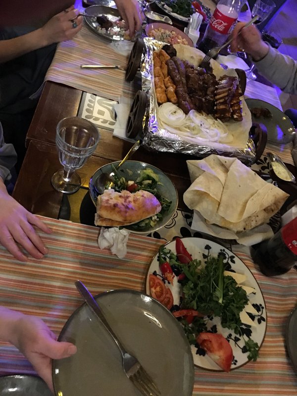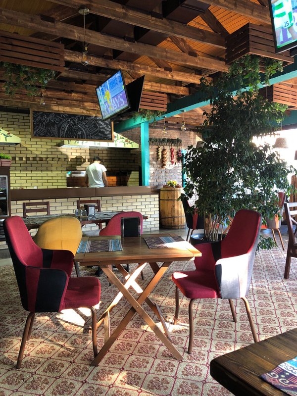Впечатления от посещения сего заведения очень стремные. Посредственная кухня от слова совсем — маленькие порции, не вкусные даже салаты (как их умудрились испортить?), что курица, что мясо жёсткое. Очень долго несли блюда. Не поворотливые и не приветливые официанты и хостес. В заведении курят кальян, хотя законом это запретили. Где проверяющие органы? И вишенка на торте: час несли хинкали. Когда я сказала, ок не нужно, мы пошли. Принесли. Попросила сложить с собой. Девушка берет и вываливает это в пакет. Контейнеров нет говорит. Не рекомендую. В городе есть заведения, где грузинская кухня вкуснее.