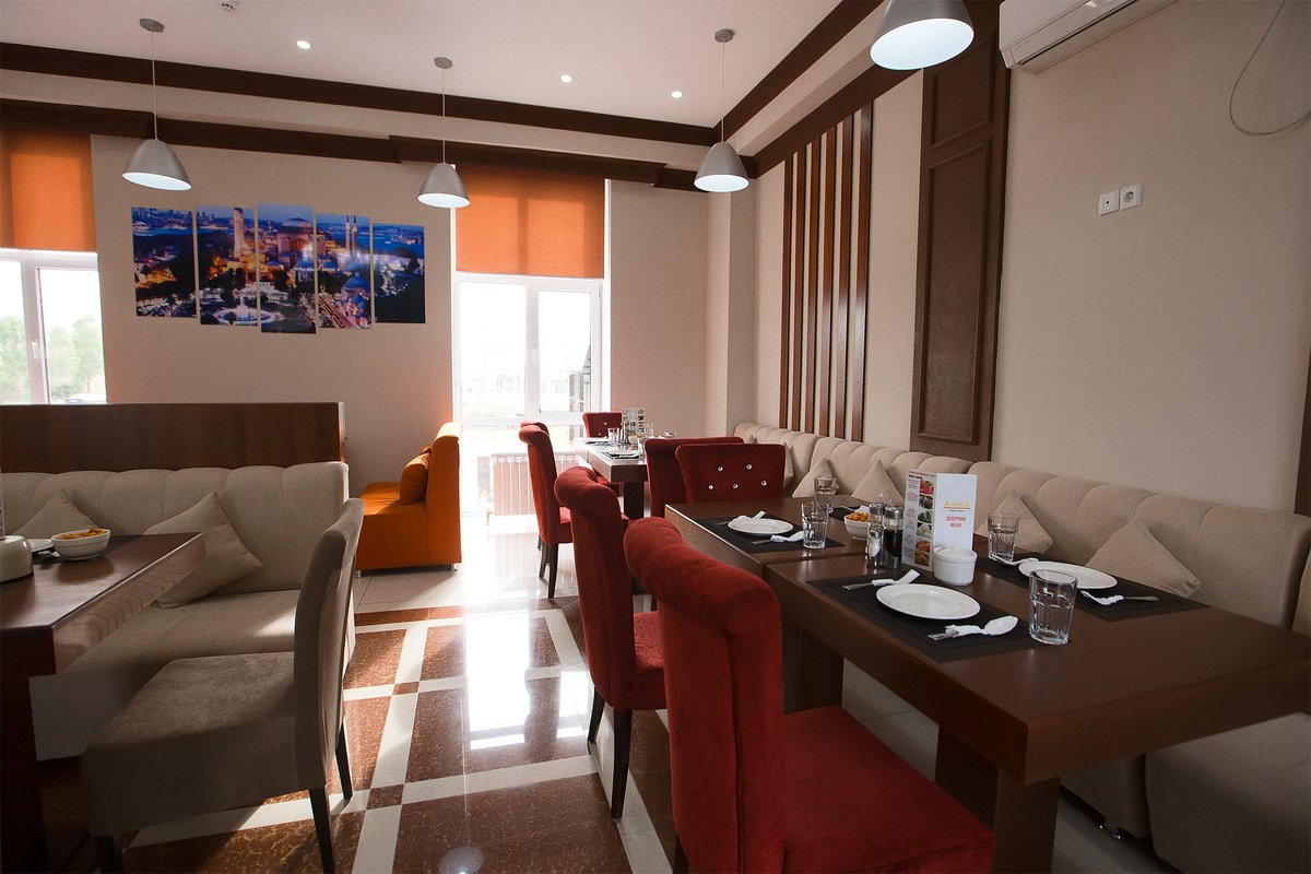 Здесь готовят блюда европейской и казахской кухни.