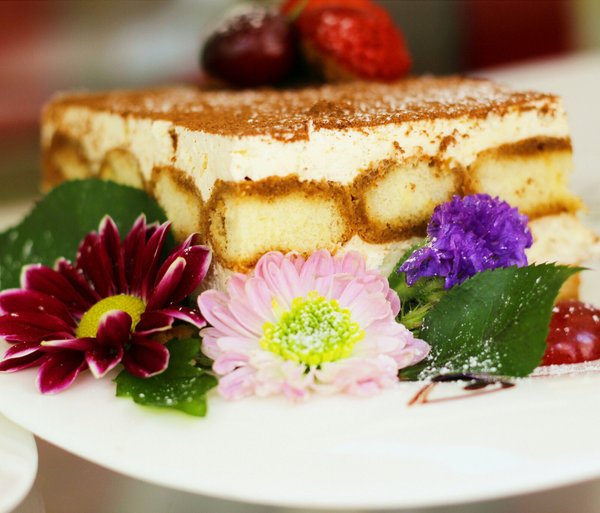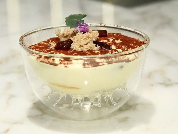 фейный сироп. Его рецепт — вода, сахар, растворимый кофе и немного вина Марсала (или другого сладкого). Соотношение ингредиентов — по вкусу. «Строят» тримису следующим образом. Сначала на дно посуды наливают немного крема. Затем печенье опускают в сироп. Пропитать его основательно или только смочить — выбор за тобой, но не забудь слегка отжать печенье. Отправляем его в тарелку. Выкладываем еще несколько слоев печенья и крема. После каждого слоя слегка постукиваем тарелкой по столу. Верхний слой должен быть кремовым, его посыпаем какао. Ставим тирамису в холодильник как минимум на час. В конце приготовления добавляем цветы и кусочки кофейного желе.