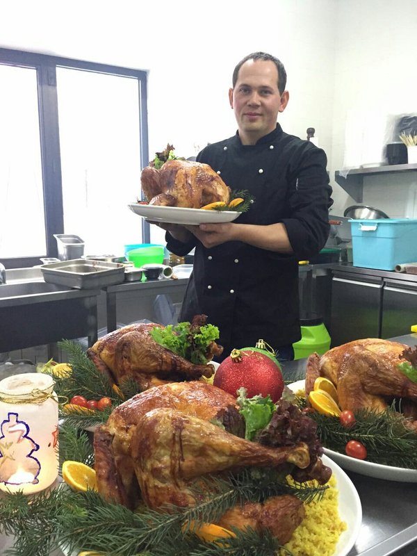 Бренд-шеф Малина GROUP Евгений Иенкин и Рождественская Индейка со сливочно-апельсиновым соусом и гарниром весом 7 кг. Малина MIX с удовольствием приготовит любое праздничное блюдо на заказ. И можно любоваться и думать какой лакомый кусочек достанется вам, мы про Индейку, не про Женю или оставить заказ в нашем ресторане. Заказы принимаем до 31 декабря включительно. Но лучше поспешить!
