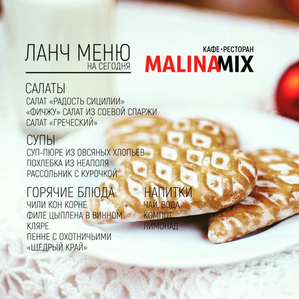 КАФЕ-РЕСТОРАН "МАЛИНА MIX"23 декабря 2016 в 13:14
